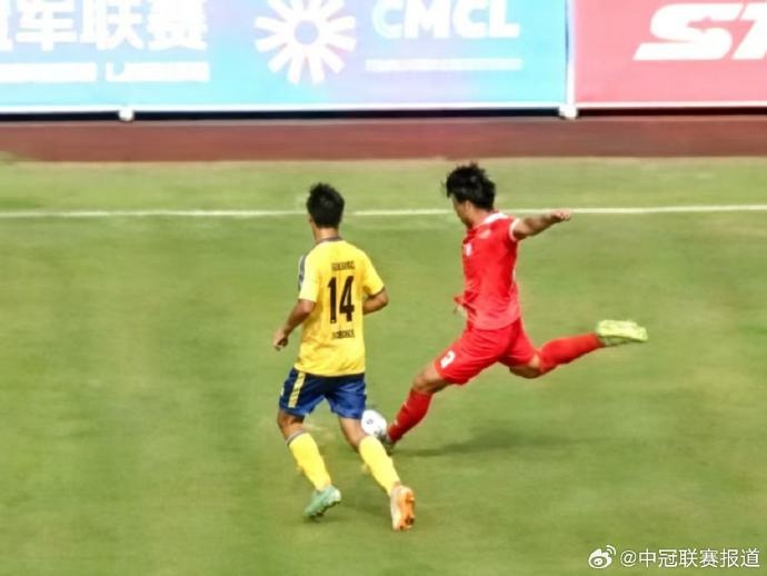 分钟,武汉联镇角球战术配合,28号林廷炫禁区线远射破门,武汉联-0领先。